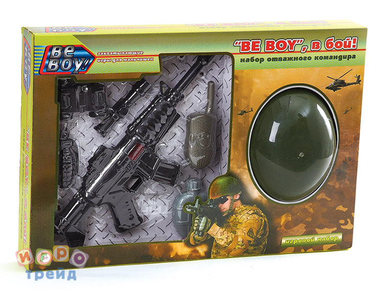 Набор "Военный" "BeBoy". В комплекте 7 предметов: шлем, автомат и др. в/к 54*7*36,5 см