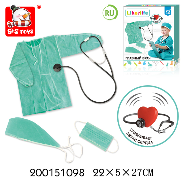 Набор "Доктор "Главный врач" с халатом,маской,шапочкой, светоскопом,функц.аксессуарами,в/к,22х5х27 см